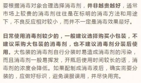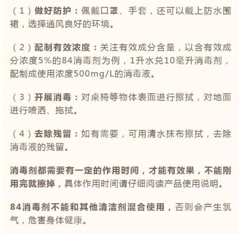 田靚介紹,在開展居家和辦公場(chǎng)所消毒需要遵循幾個(gè)原則:第一,清潔為主、消毒為輔的原則:通常情況下做好環(huán)境清潔工作,對(duì)于確有風(fēng)險(xiǎn)的環(huán)節(jié)和對(duì)象開展消毒,消毒應(yīng)在完成清潔的前提下開展。第二,物理方法為主、化學(xué)方法為輔的原則:優(yōu)先使用包括開窗通風(fēng)、機(jī)械換氣、加熱煮沸、陽(yáng)光暴曬等消毒方法。第三,預(yù)防性消毒與隨時(shí)消毒相結(jié)合的原則:日常做好各類物品、電梯、扶手、衛(wèi)生間等消毒工作,每天1-2次。出現(xiàn)污染的情況,隨時(shí)開展消毒,隨時(shí)做好手部清潔衛(wèi)生。第四,消毒強(qiáng)度與風(fēng)險(xiǎn)高低相一致的原則:頻繁接觸的物品,消毒頻次可以高一些,污染嚴(yán)重的對(duì)象消毒濃度適當(dāng)提高,消毒時(shí)間適當(dāng)延長(zhǎng)。第五,消毒時(shí)做好個(gè)人防護(hù),不僅要防病原體感染,也要防消毒液對(duì)人的刺激和損傷。常見的消毒誤區(qū)有幾個(gè):一、對(duì)蔬菜水果噴灑消毒劑——通常情況下,可以對(duì)蔬果外包裝進(jìn)行消毒,蔬果本身只需要清潔,不建議使用化學(xué)消毒劑消毒,以免影響食品安全和口感。確有消毒需要的,可以使用有蔬果備案的消毒劑,根據(jù)說明書上使用濃度浸泡10-30分鐘后,使用清水沖洗去除殘留消毒液。二、消毒液濃度越高越好——使用消毒劑時(shí)按照說明書相應(yīng)對(duì)象的濃度進(jìn)行正確配置。消毒液濃度并非越高越好,高濃度的消毒液通常腐蝕性、刺激性等副作用也會(huì)更多,去殘留的工作量也會(huì)越大。三、對(duì)人、對(duì)衣物噴灑消毒劑——一般來講,個(gè)人外衣攜帶新冠病毒的幾率較小;其次,用化學(xué)消毒液對(duì)人體直接噴灑時(shí)一方面會(huì)造成對(duì)人的刺激和損傷,同時(shí)因?yàn)閲姙⒌臅r(shí)間太短,噴灑的量也太少,起不到消毒效果。四、在室內(nèi)使用加濕器進(jìn)行“預(yù)防性空氣消毒”——這種方式一方面消毒效果難以保證,另一方面人群很容易受到消毒劑的傷害,如呼吸道刺激、灼傷和造成過敏等,這也是個(gè)誤區(qū)疫情期間,大家可能囤了一些消毒用品,在儲(chǔ)備消毒劑時(shí)應(yīng)當(dāng)注意安全存放,密封、避光保存。消毒劑不能放在臥室、廚房等地方。家中有孩子的,還應(yīng)防止孩子誤取、誤食。常用的消毒產(chǎn)品,在沒有開封前,保質(zhì)期通常在2年左右。開封后,酒精類消毒劑建議在一個(gè)月內(nèi)使用完,其他消毒劑建議在兩個(gè)月內(nèi)使用完。如果是配制好稀釋過的消毒液建議當(dāng)天使用。 當(dāng)前是疫情防控關(guān)鍵時(shí)期 及時(shí)有效開展消毒 是盡早殺滅家庭環(huán)境中 潛在病毒的有效手段