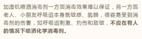 20、老人、小朋友的抵抗力比較差,能否在他們的房間使用加濕機(jī)噴灑消毒劑不斷殺死新型冠狀病毒?